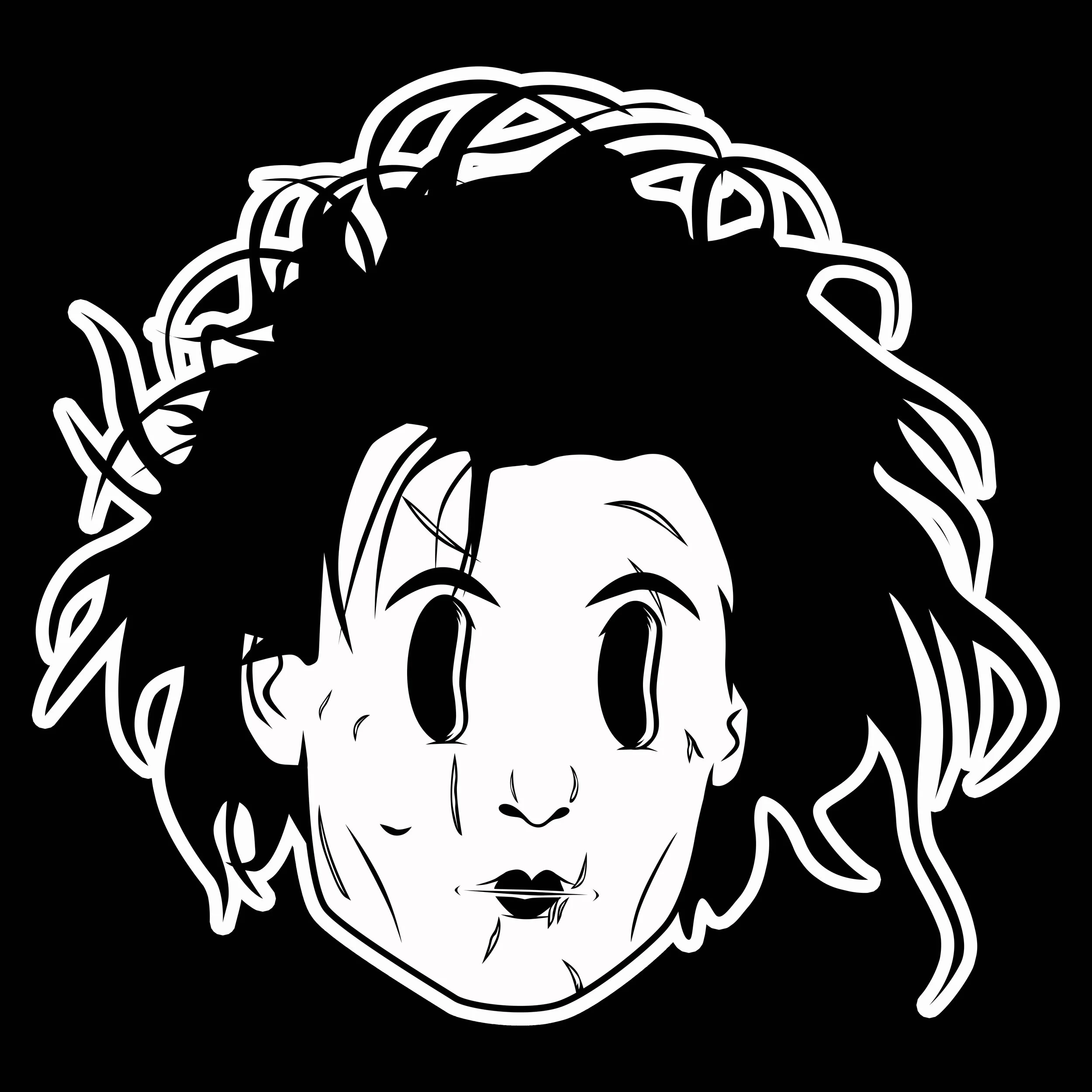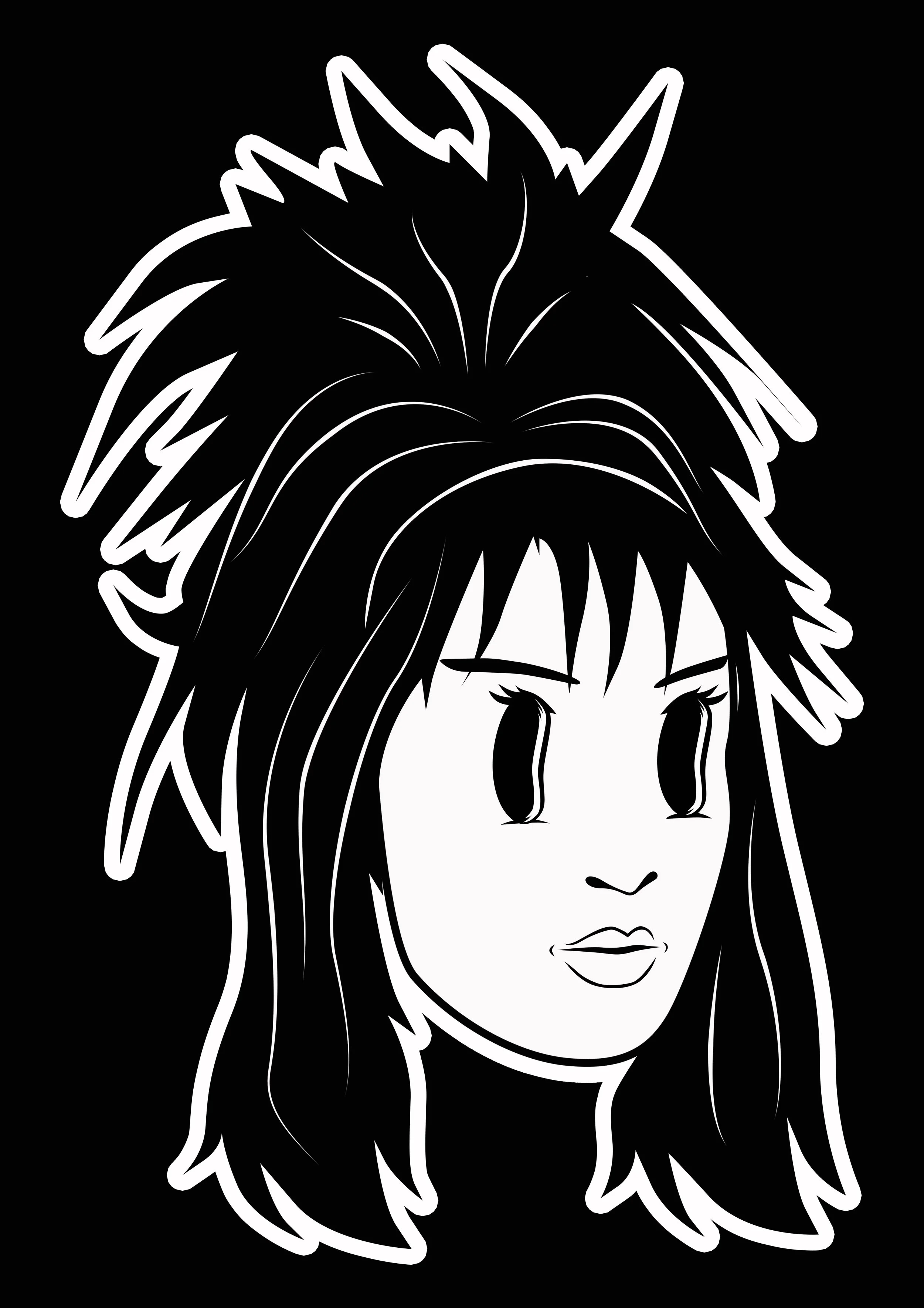 I love the big cartoon eyes because I feel there is a creepy innocence to them. On one hand they look like big pupils with thin white of the eye. But on the other hand they have that creepy hollow look. I love that juxtaposition.